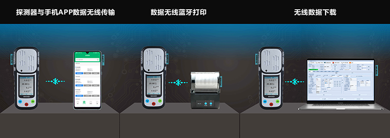 檢測數(shù)據(jù)可通過藍(lán)牙直接傳輸至安卓手機(jī)APP、客戶端監(jiān)控管理軟件及云端,實(shí)現(xiàn)人員定位、數(shù)據(jù)分析和應(yīng)急處置。同時(shí),藍(lán)牙也可連接便攜式打印機(jī),實(shí)時(shí)打印數(shù)據(jù)以便管理與保存。此外,數(shù)據(jù)還能通過藍(lán)牙或USB接口傳輸至電腦客戶端的氣體監(jiān)測軟件,實(shí)現(xiàn)實(shí)時(shí)管理與查看。